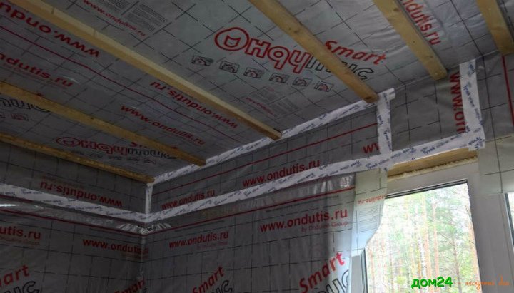 Покрываем утеплитель пароизоляционной мембраной.