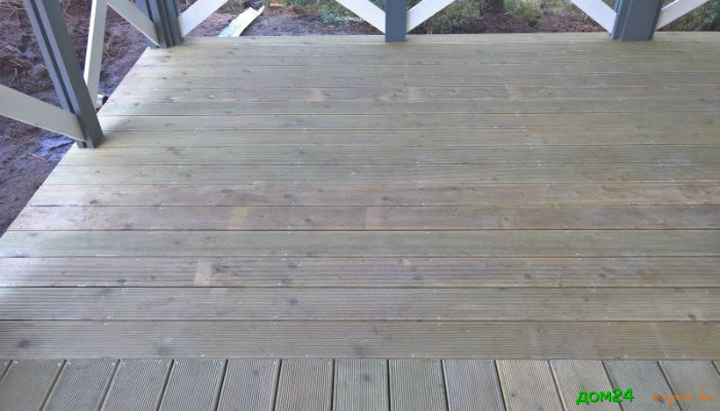На пол постелили террасную доску.