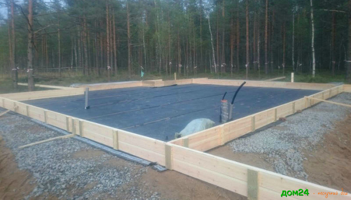 Выставили опалубку, уложили гидроизоляцию и коммуникации.