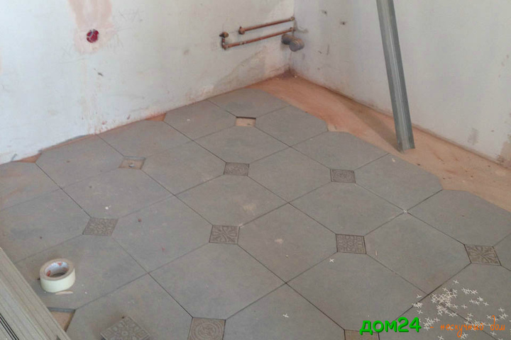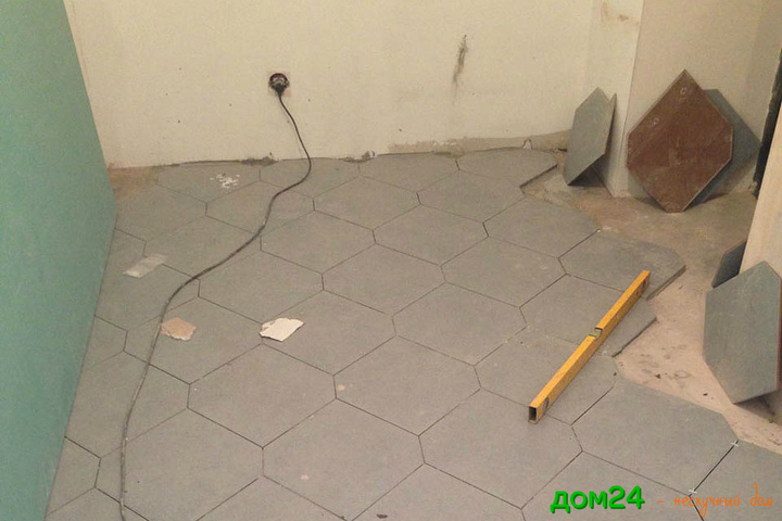 Приступаем к укладке плитки в гостиной.