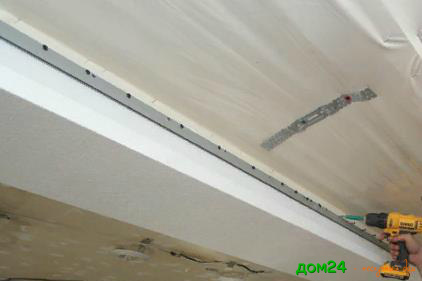 Монтируем коробы под скрытую проводку и натяжной потолок.