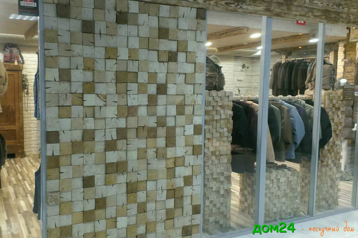 Стоимость облицовки за метр квадратный (материал + монтаж): - спилами из пиленного массива сосны (50 х 50 мм) толщиной 2, 3, 4, 5 см - от 44 рублей.
